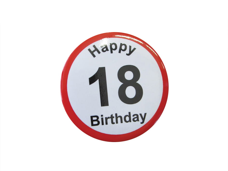 BADGE PRZYPINKA URODZINOWY - 18 METALOWA BUTTON