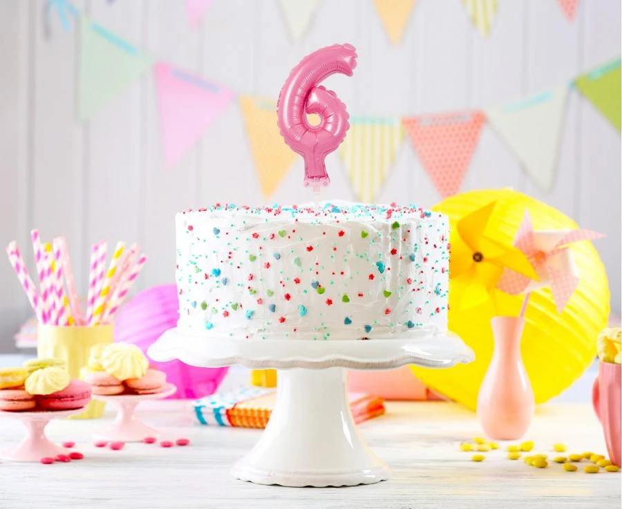 Balon foliowy 13 cm na patyczku Cyfra 6 różowa