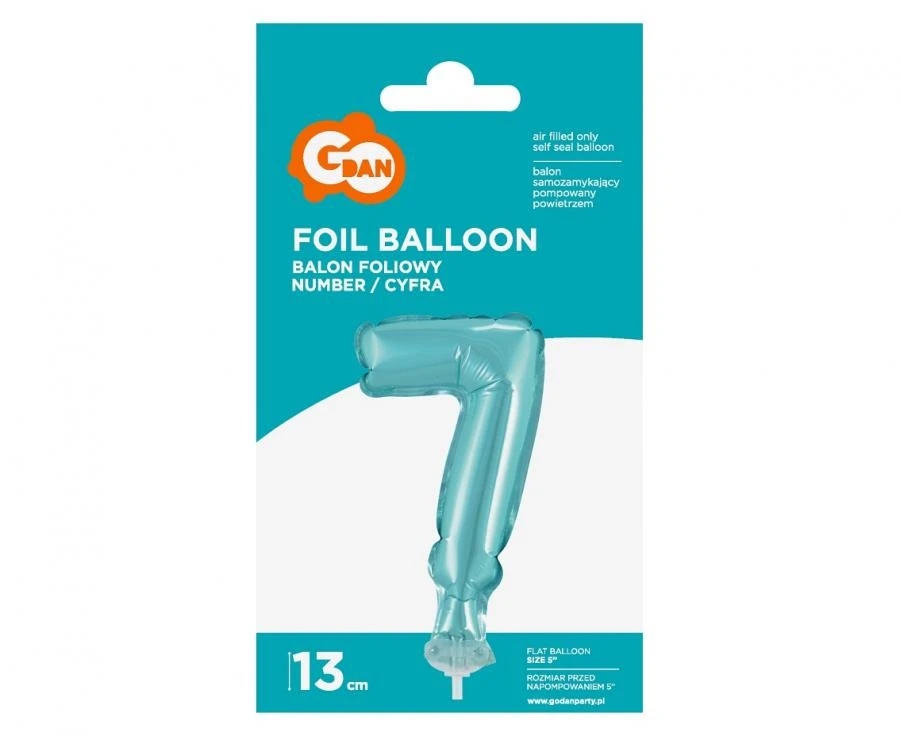 Balon foliowy 13 cm na patyczku Cyfra 7 błękitna