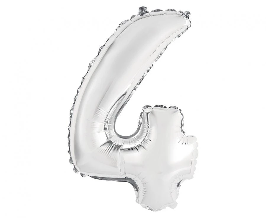 Balon foliowy Cyfra 4 srebrna 35 cm Urodziny