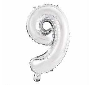 Balon foliowy "Cyfra 9", srebrna, 35 cm KK