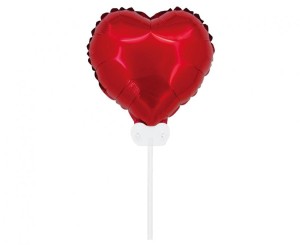 Balon foliowy Serce 11" czerwone z patyczkiem i zaworem