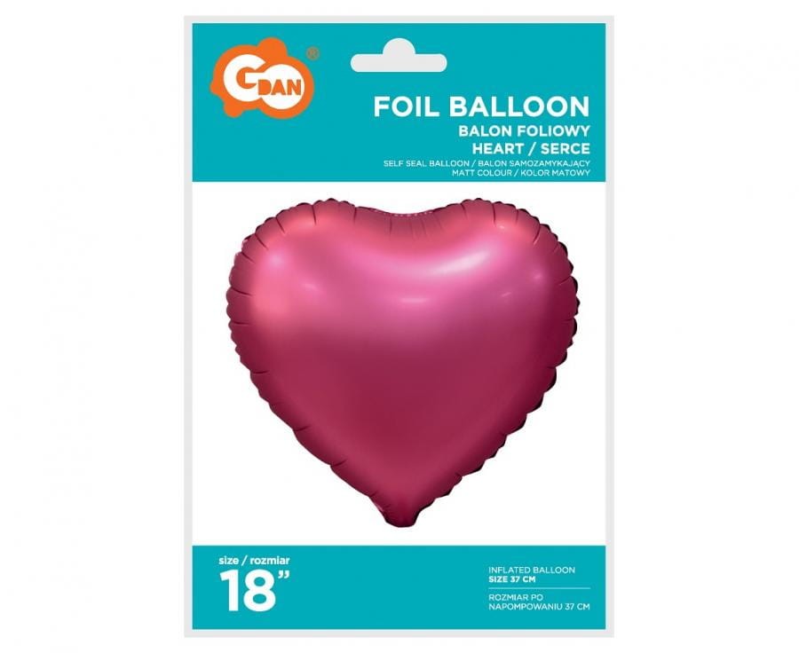 Balon foliowy Serce matowe ciemno różowe 18" na hel powietrzne