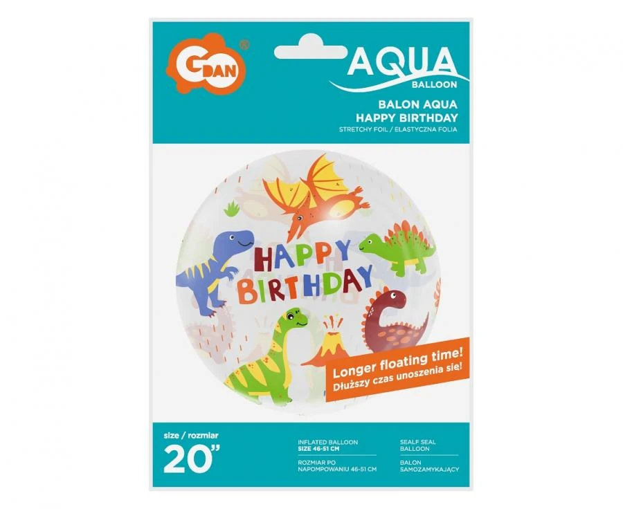 BALON URODZINOWY KULA NA URODZINY DINOZAURY 20 CALI AQUA KRYSZTAŁOWY