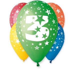 Balony urodzinowe z cyfrą 3 na urodziny pastel mix 12" 30 cm 5 szt