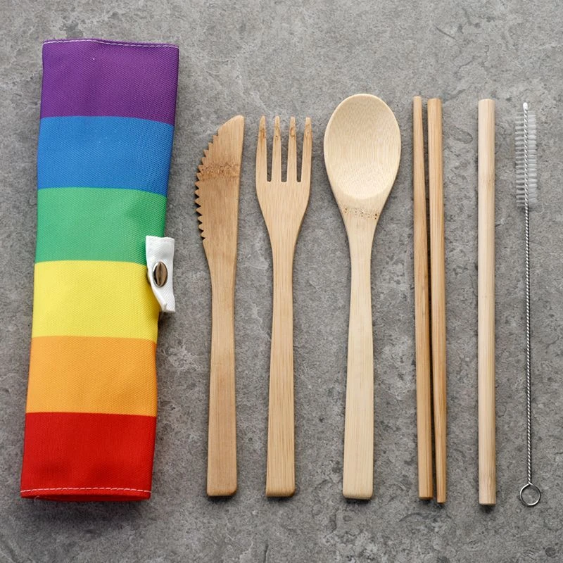 Bambusowe sztućce etui Tęcza II BAMBUS wielorazowe