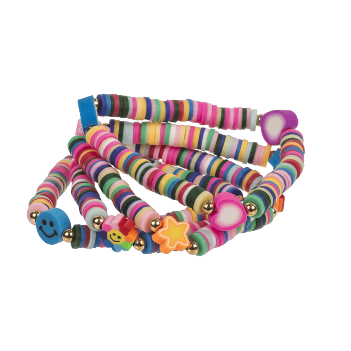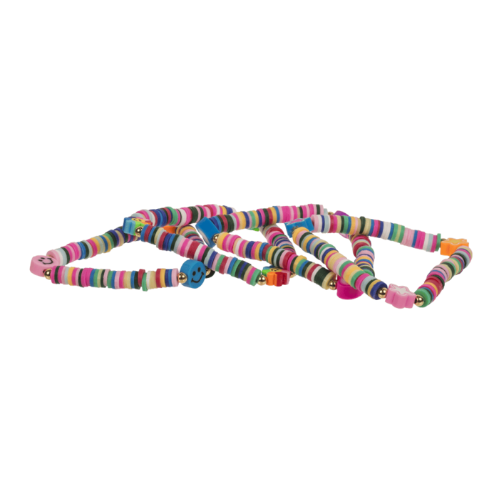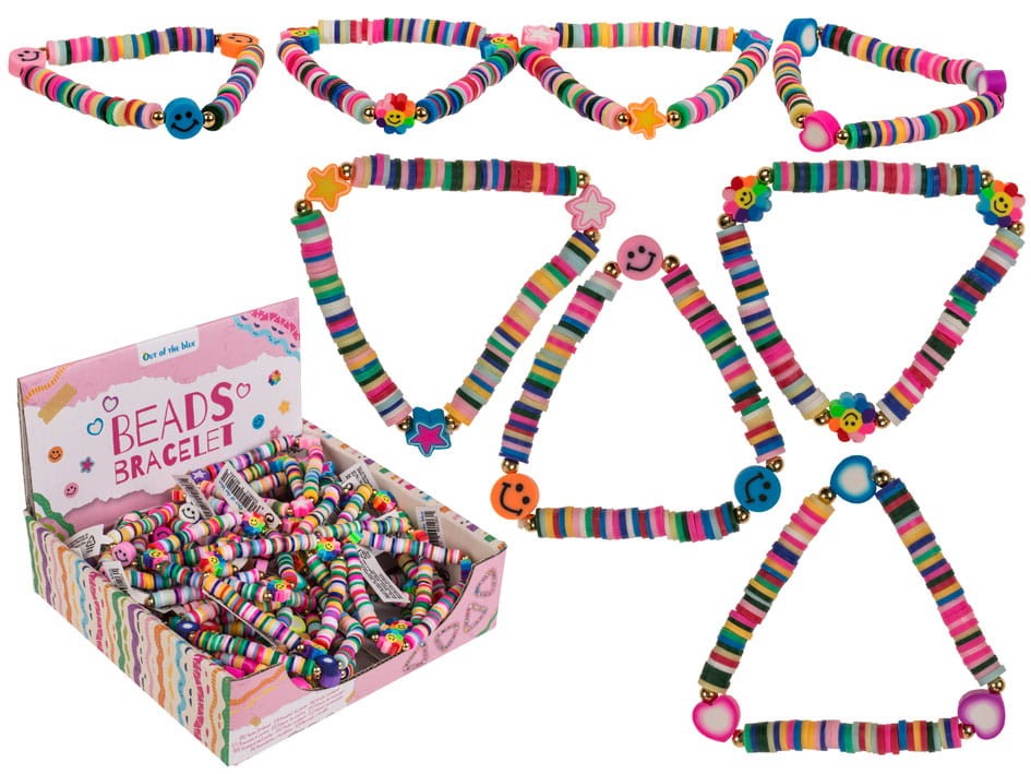 Kolorowa bransoletka z koralików z radosnymi akcentami. Elastyczna, lekka i pełna pozytywnej energii – idealna dla dzieci, młodzieży i dorosłych.