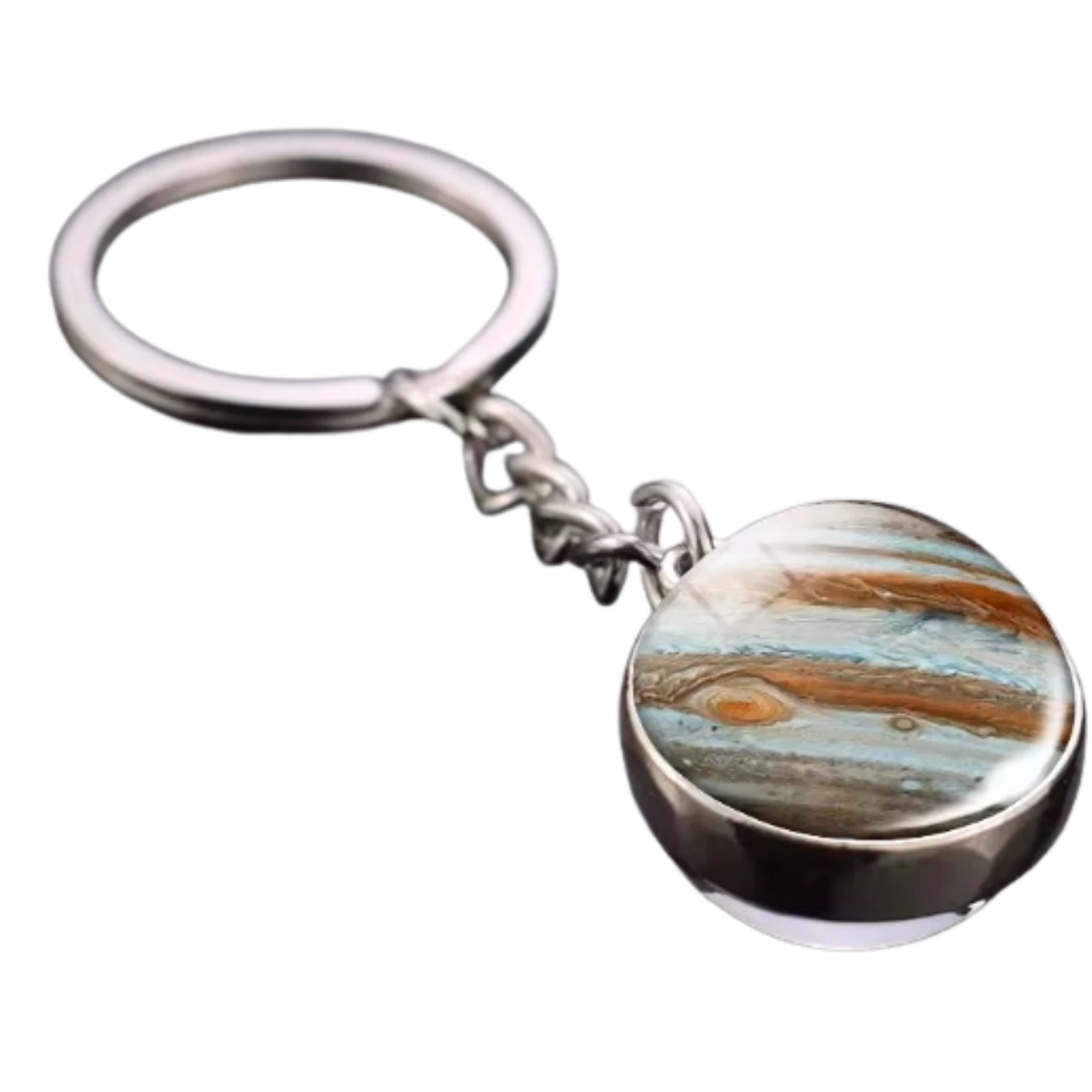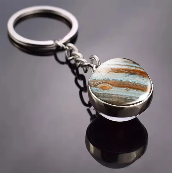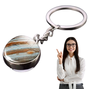 Brelok Jowisz to unikalny gadżet, który pozwala nosić przy sobie potęgę największej planety Układu Słonecznego w eleganckiej, minimalistycznej formie. W szklanej kuli o średnicy 2 cm zamknięto realistyczny obraz Jowisza z charakterystyczną Wielką Czerwoną Plamą i majestatycznymi pasami chmur, które przypominają żywą mapę burz i kosmicznych wiatrów.