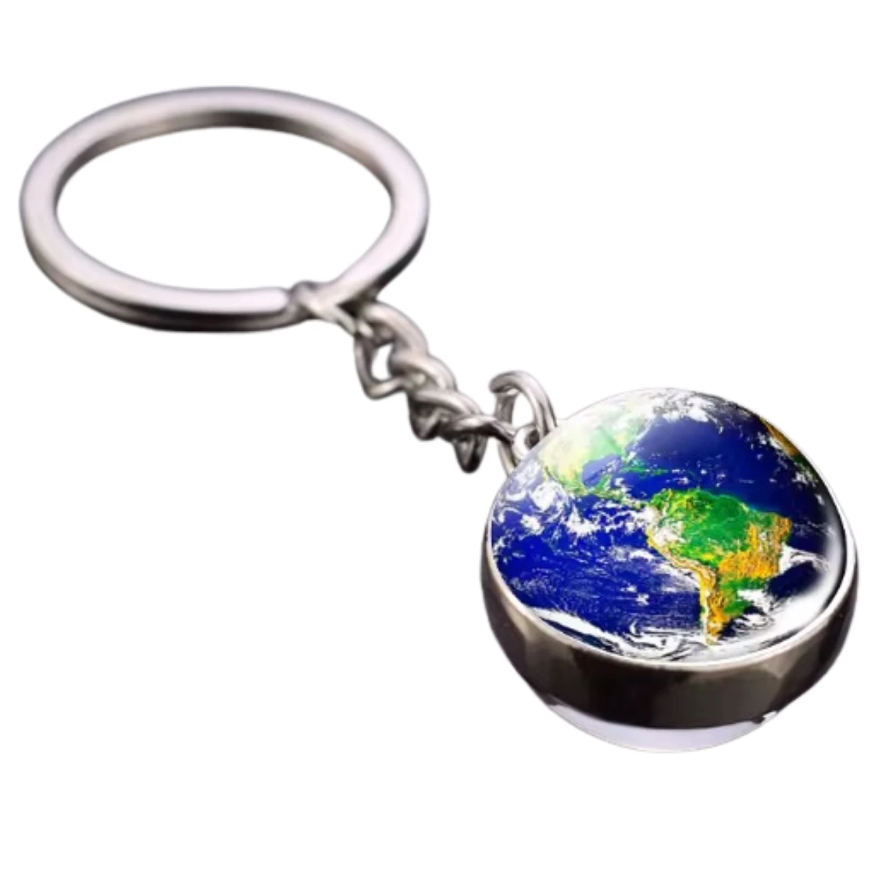 Szklany brelok Ziemia z realistyczną grafiką planety. Symbol podróży, ekologii i wspólnoty, idealny prezent dla miłośników natury i kosmosu.