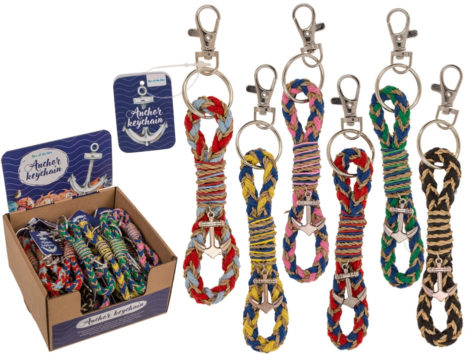 Stylowy brelok z kotwicą i plecionym sznurem. 6 kolorów, solidny karabińczyk. Idealny dla żeglarzy, podróżników i fanów stylu marynistycznego.