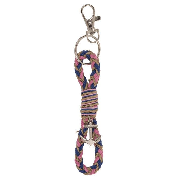 Brelok marynistyczny z kotwicą – pleciony sznur, karabińczyk
