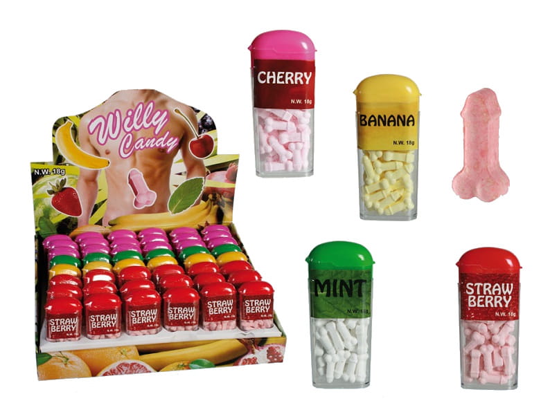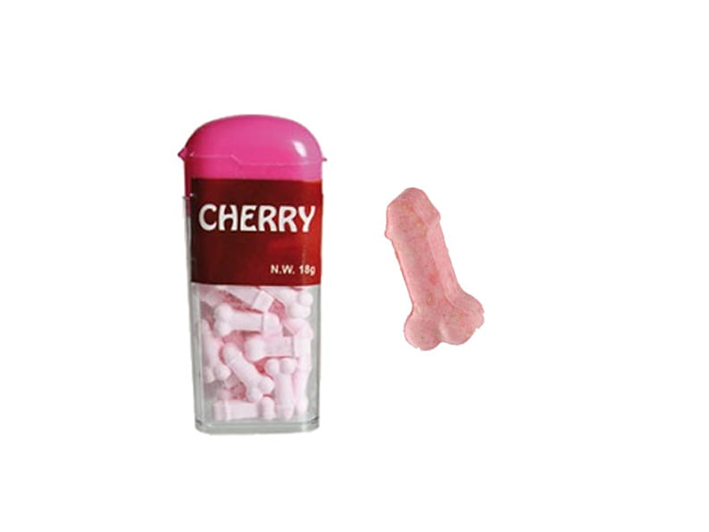 Owocowe cukierki w kształcie penisków. Cukierki są świetnym pomysłem, aby urozmaicić menu np. wieczoru panieńskiego. Mogą posłużyć również jako żartobliwy prezent.