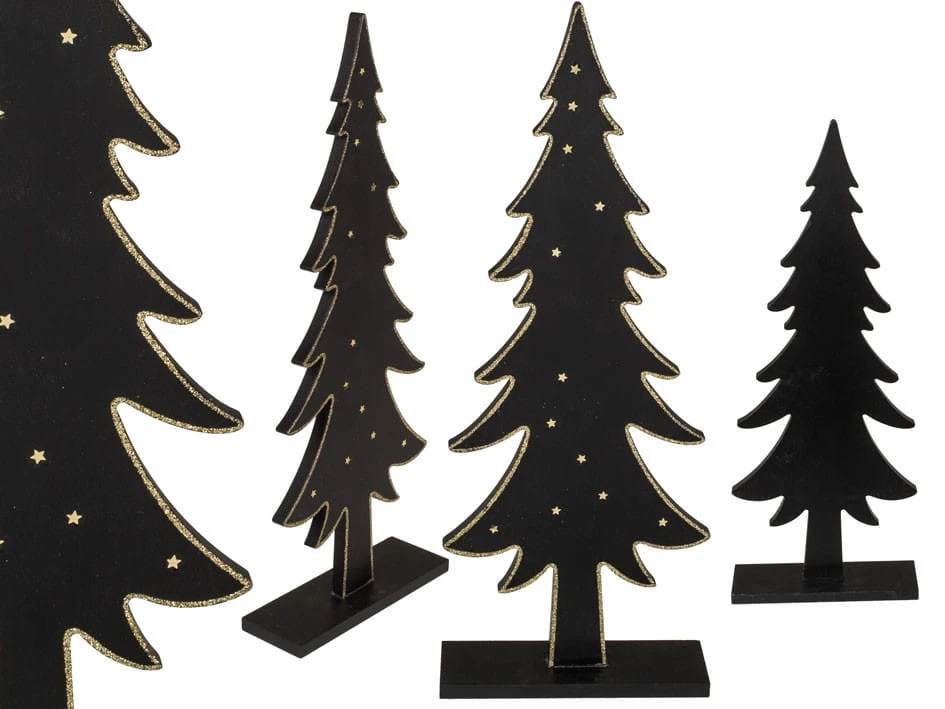 Urocza ozdobna drewniana czarna choinka na podstawie. Wysokość ok. 38 cm. Idealne rozwiązanie, gdy potrzeba niewielkiej choinki. Bardzo wygodne wyjście dla tych, którzy nie mają czasu na ozdabianie drzewka, ale chcą zachować tradycję. Choinka doskonale wygląda jako ozdoba na stole, komodzie czy półce.