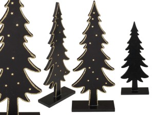 Urocza ozdobna drewniana czarna choinka na podstawie. Wysokość ok. 31 cm. Idealne rozwiązanie, gdy potrzeba niewielkiej choinki. Bardzo wygodne wyjście dla tych, którzy nie mają czasu na ozdabianie drzewka, ale chcą zachować tradycję. Choinka doskonale wygląda jako ozdoba na stole, komodzie czy półce.