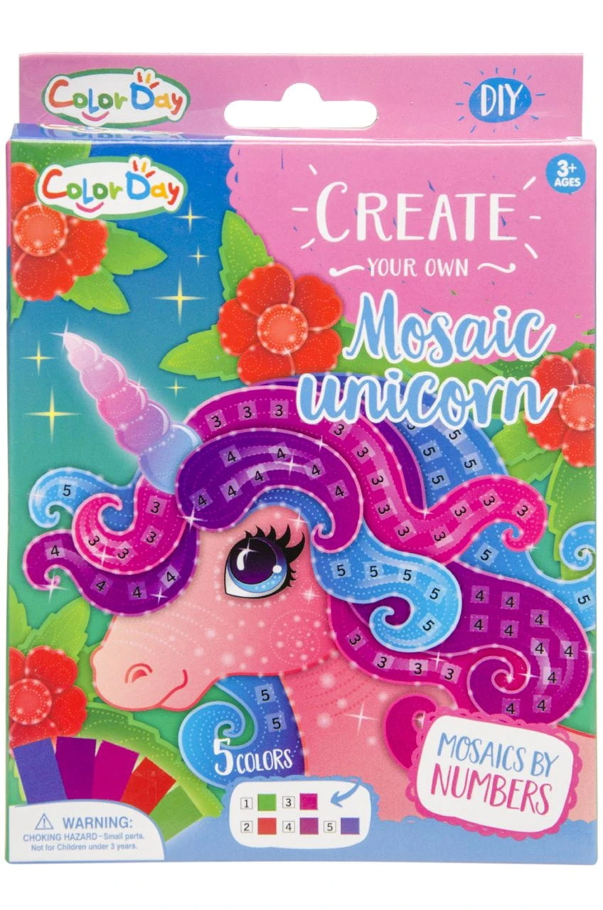 Nasz zestaw zawiera wszystko, czego potrzebujesz do stworzenia tej wyjątkowej mozaiki. Obrazek jednorożca jest podzielony na małe kwadraciki, a każdej cyferce przypisany jest określony kolor. Wystarczy, że przykleisz odpowiednie kwadraciki zgodnie z tym kluczem, a otrzymasz wspaniałą, wyklejoną kompozycję.