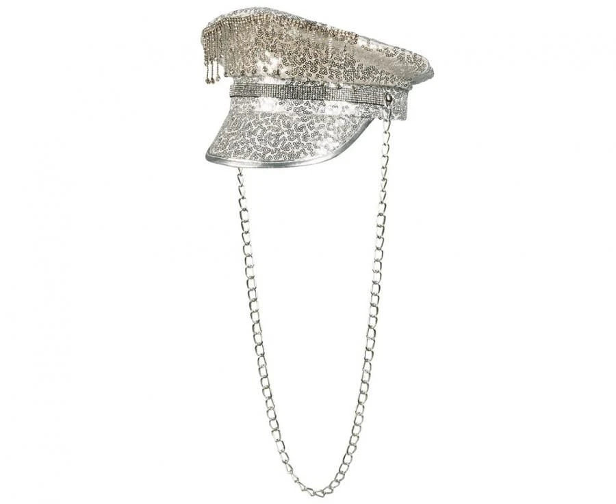 Czapka Dusty błyszcząca z Cekinami z Łańcuszkiem na Imprezę