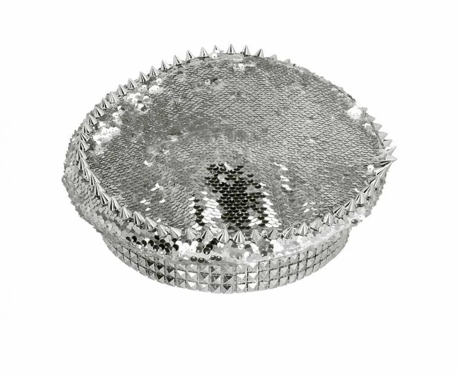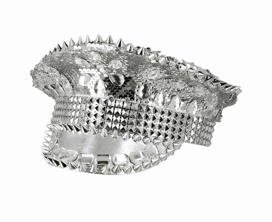 Czapka Srebrna z Daszkiem Ćwiekami Błyszcząca Glam Rock Przebranie Karnawał