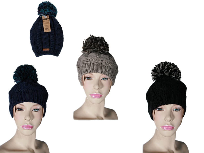 Czapka z pomponem Damska Zimowa Pleciona Krasnal