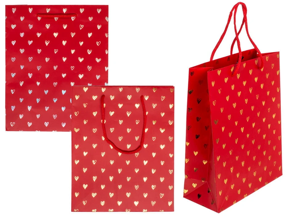 Czerwona Torba Prezentowa z Motywem Lśniących Serc – Elegancja na Wyciągnięcie Ręki