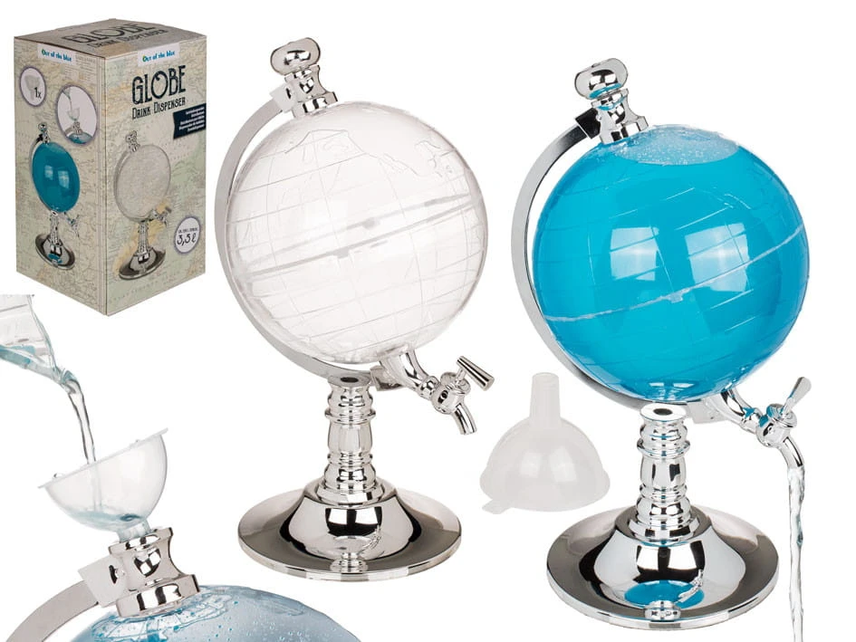 Dystrybutor alkoholu oraz napojów o niesamowitym kształcie i wzorze - globusa. Duża pojemność (około 3.5 litra) pozwala na świetne wykorzystanie dyspensera w trakcie spotkania ze znajomymi. Z takim produktem na pewno zrobisz na wszystkich bardzo duże wrażenie.