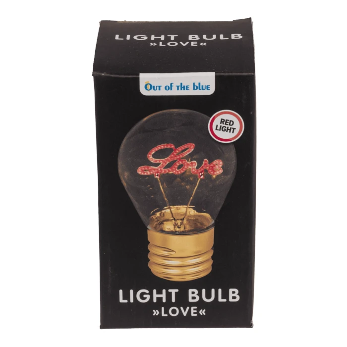 Dekoracyjna żarówka LED z czerwonym napisem "LOVE"
