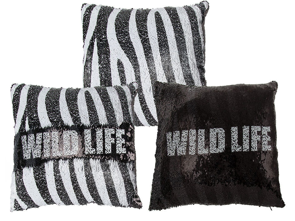 Dekoracyjna Poduszka Czarno-Biała Wild Life Magiczne Cekiny