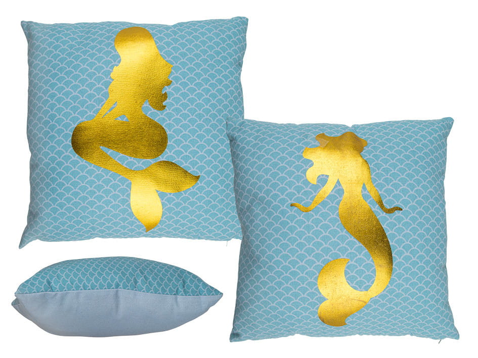 Dekoracyjna Poduszka Syren Niebieska Złota Łuski