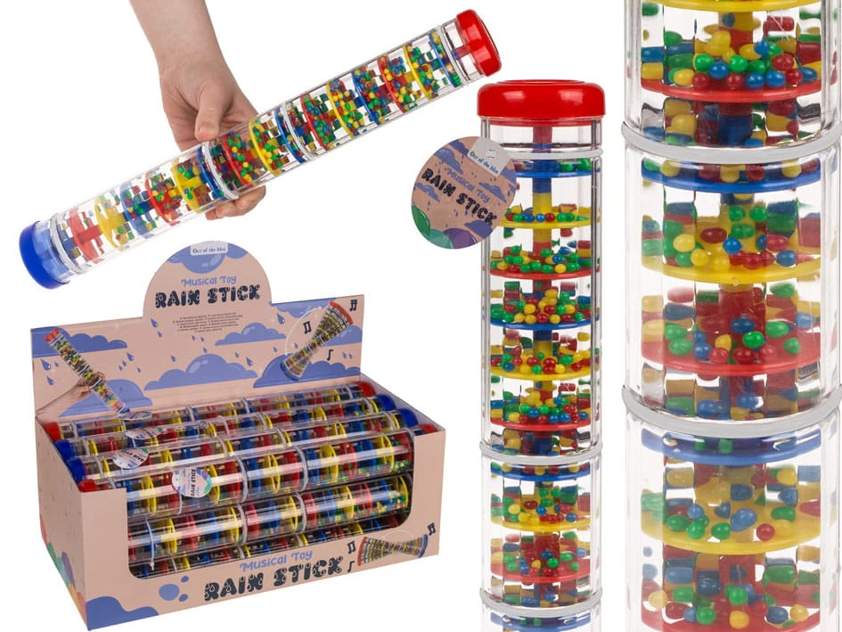 Odkryj magiczny dźwięk deszczu zamknięty w przezroczystej tubie! Deszczowy kij to wyjątkowa zabawka muzyczna, która pozwala dzieciom (i dorosłym) cieszyć się kojącym szumem przesypujących się kuleczek. Wystarczy obrócić go do góry nogami, by usłyszeć dźwięk przypominający delikatny, naturalny opad deszczu.