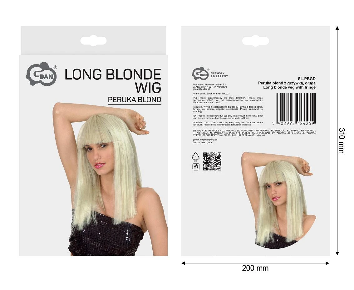 Odmień swój wygląd w kilka chwil dzięki długiej peruce blond z grzywką! To idealny sposób, by dodać swojej stylizacji blasku, kobiecości i odwagi. Peruka doskonale sprawdzi się podczas imprez tematycznych, wieczorów panieńskich, bali kostiumowych czy klubowych zabaw, gdzie liczy się efekt i wyjątkowy styl.