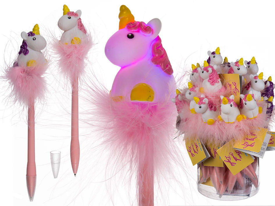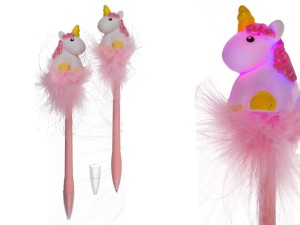Długopis Jednorożec LED Futerkiem Świecący mix wzorów