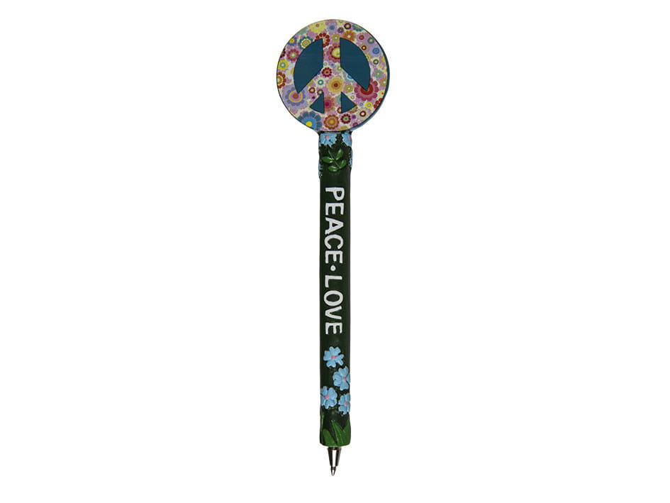 Oryginalny długopis z czarnym wkładem we wzorze nawołującym do pokoju. Całości dopełnia trzonek długopisu, który udekorowany jest w motywach kwiatów. Długopis świetnie obrazuje przekonania właściciela oraz stanowi atrakcję dla wszystkich osób dookoła. Wysyłamy jako mix wzorów. Display gratis przy zakupie 12 sztuk.
