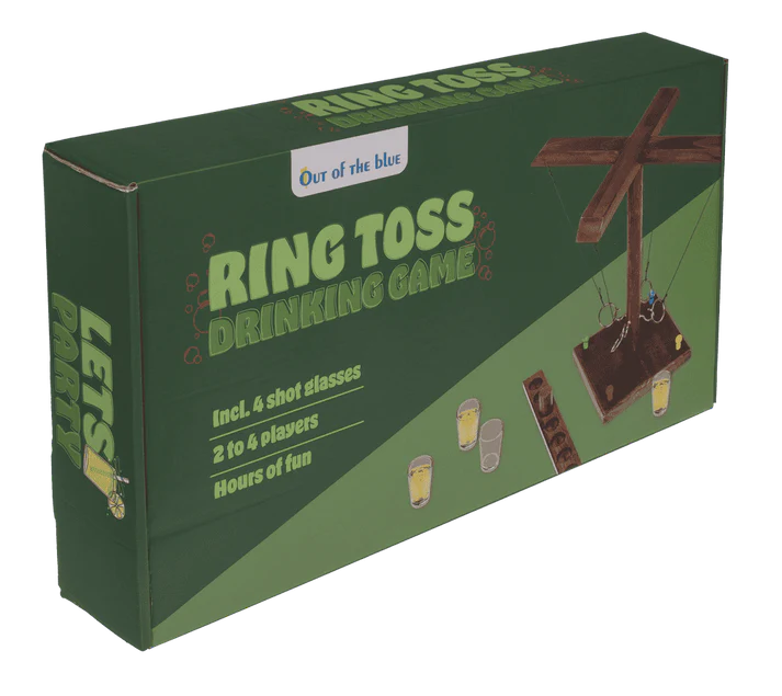 Sprawdź swoją celność z drewnianą grą rzut pierścieniem! Solidny zestaw imprezowy z 4 kieliszkami. Idealny na prezent, domówkę i wieczór kawalerski. Traf i pij!