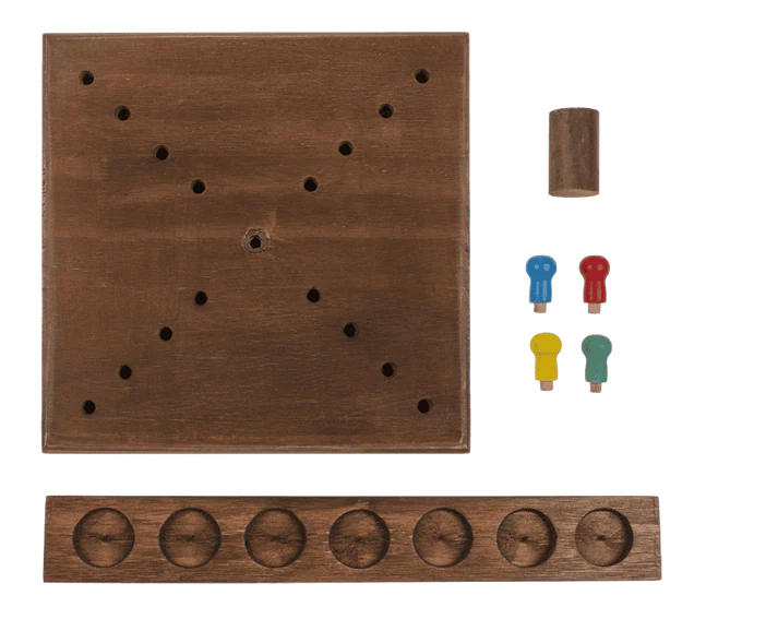 Wykonana z naturalnego drewna gra prezentuje się na stole tak dobrze, że mogłaby udawać elegancką ozdobę, gdyby nie dołączone do niej cztery kieliszki, które jasno określają cel spotkania. To idealny mix zręcznościówki i klasycznej gry towarzyskiej, która nie potrzebuje baterii – jedynym paliwem jest tutaj Twoja precyzja (i zawartość kieliszków).