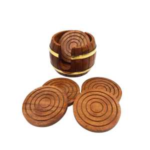 ✔ Zestaw obejmuje 6 drewnianych podkładek i pojemnik w kształcie beczki. ✔ Eleganckie mosiężne zdobienia podkreślające klasyczny design. ✔ Wyżłobione wzory na podstawkach dla zwiększenia przyczepności kubków. ✔ Oryginalne opakowanie w formie beczki – funkcjonalność i dekoracja w jednym.