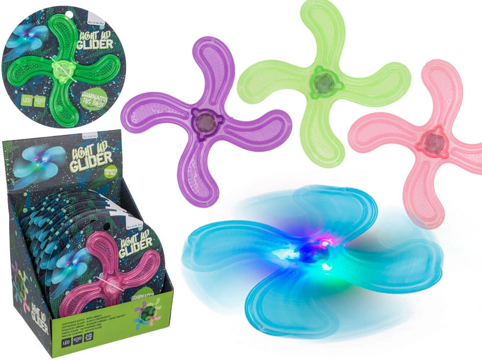 Świecący szybowiec ma około 21 cm długości i został wykonany z miękkiej gumy, co sprawia, że jest bezpieczny i trwały w użytkowaniu. Konstrukcja jest lekka i aerodynamiczna, co umożliwia płynne i długotrwałe loty po powietrzu.