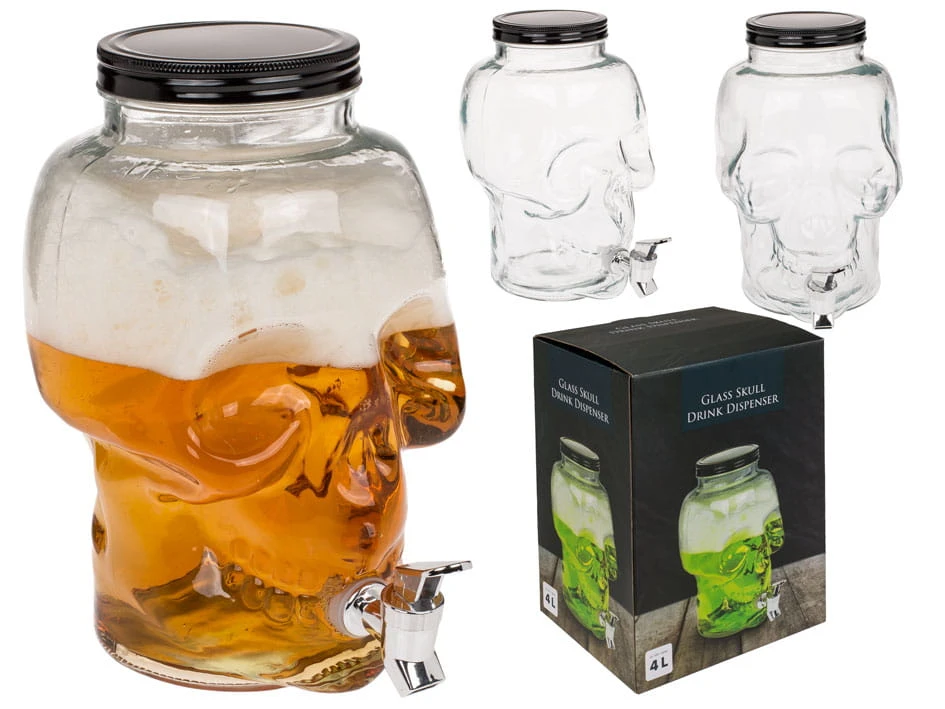 Dystrybutor alkoholu oraz napojów o niesamowitym kształcie i wzorze - czachy. Duża pojemność (około 4 litrów) pozwala na świetne wykorzystanie dyspensera w trakcie spotkania ze znajomymi. Z takim produktem na pewno zrobisz na wszystkich bardzo duże wrażenie.
