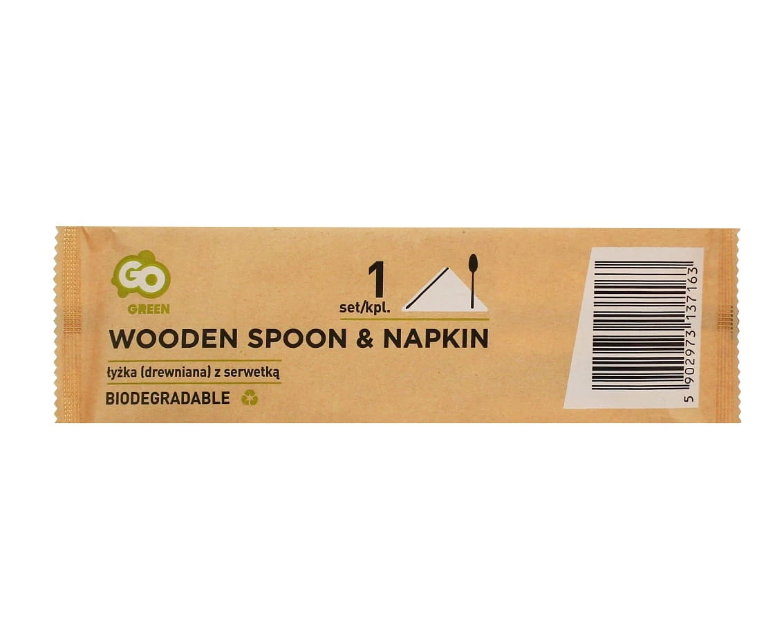 Ekologiczne sztućce drewniane - łyżka + serwetka
