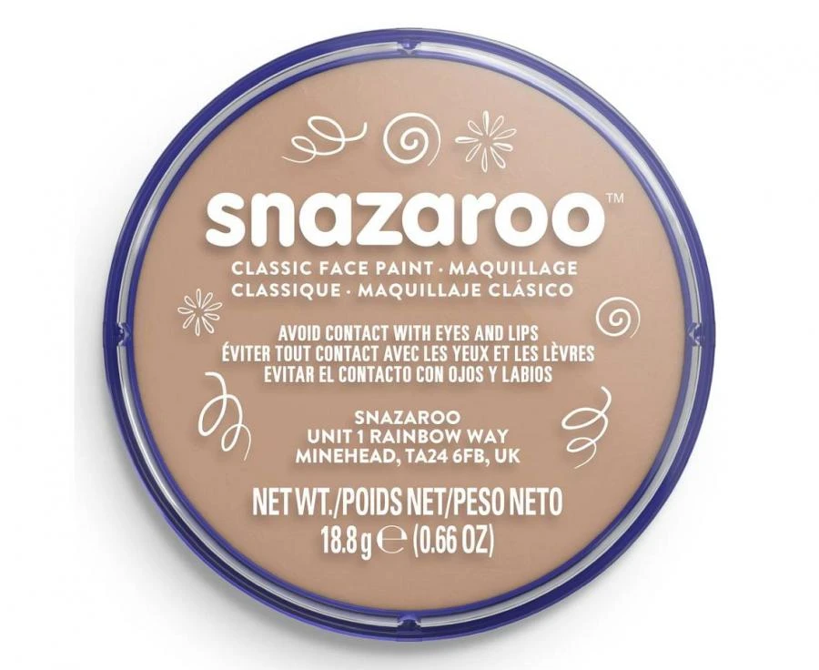 Nadaj swojej stylizacji naturalny i delikatny wygląd dzięki farbie do twarzy Snazaroo 18 ml w kolorze jasny beż. Farba jest bezpieczna dla skóry, łatwa w aplikacji i idealna do karnawału, imprez tematycznych, festynów, Halloween oraz zabaw kreatywnych dla dzieci i dorosłych.