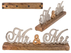 Figurka Dekoracja drewniana podstawa napis Mr Mrs