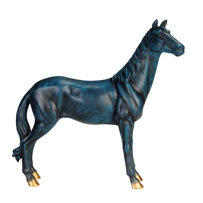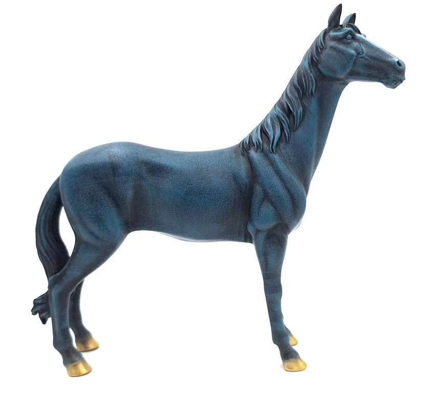 Stylowa figurka konia z polyresinu w granatowym kolorze ze złotymi akcentami. Symbol wolności i elegancji – idealna do salonu, biura i na prezent.