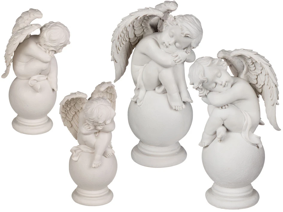 Figurka aniołka śpiącego na kuli – delikatna dekoracja pełna spokoju