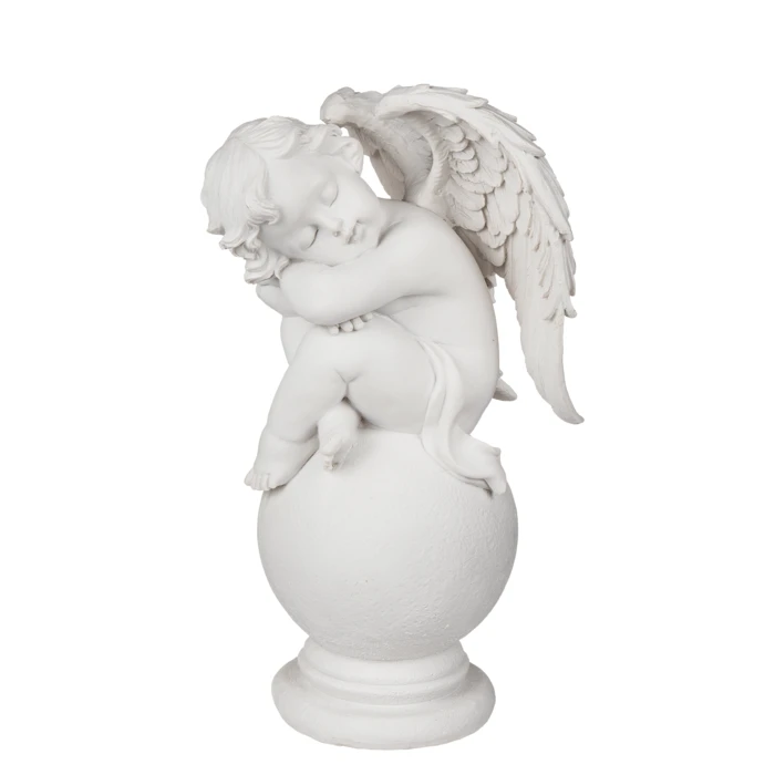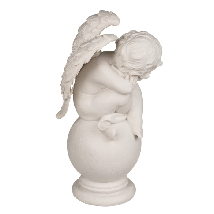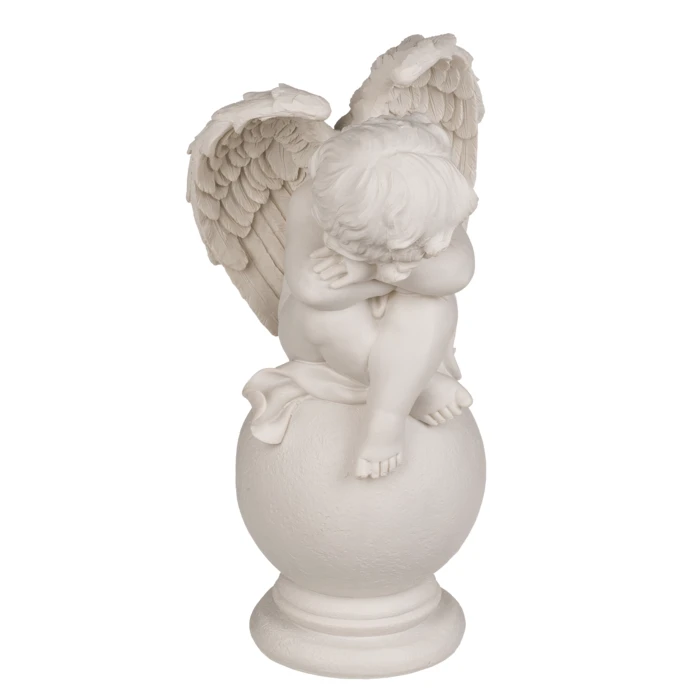 Figurka aniołka śpiącego na ozdobnej kuli – emanująca spokojem i ciepłem.