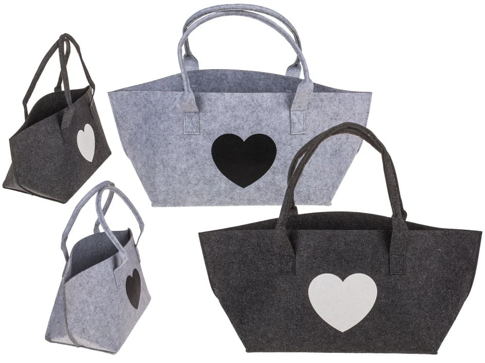 Filcowa torba na zakupy z sercem 35x20x23 cm