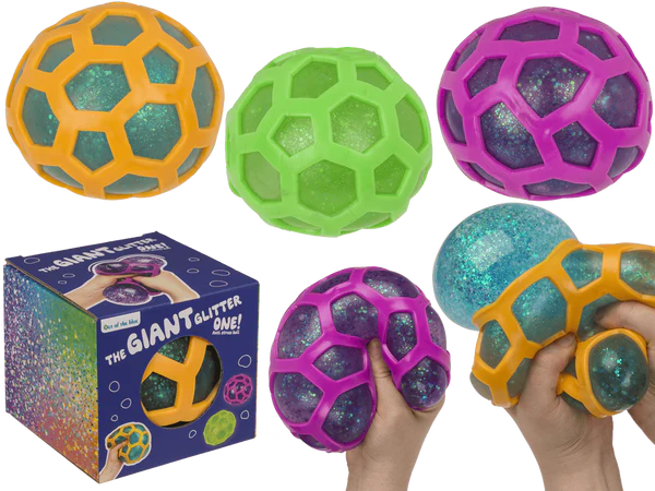 Gigantyczny gniotek brokatowy w siatce - duża piłka antystresowa XXL
