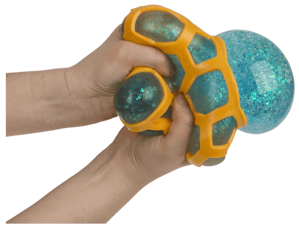 Magia zaczyna się przy pierwszym uciśnięciu. Dzięki elastycznej siatce, masa z połyskującym brokatem przeciska się przez oczka, tworząc hipnotyzujące, błyszczące bąble. To nie tylko zabawa, to wręcz medytacja w ruchu, która angażuje dłonie i uspokaja wzrok. Jest tak wielki, że ledwo mieści się w dłoniach, co daje niespotykaną dotąd satysfakcję z ugniatania. Idealny kompan na biurko, który sprawi, że każde napięcie pryśnie szybciej niż bańka mydlana – tyle że ten bąbel wróci do swojej formy i pozwoli Ci zacząć zabawę od nowa!