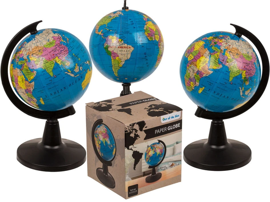 Globus został wykonany z papierowej mapy z angielskimi oznaczeniami, co ułatwia naukę nazw kontynentów, państw i oceanów. Stabilna plastikowa podstawka zapewnia trwałość oraz komfort użytkowania, dzięki czemu produkt świetnie prezentuje się na biurku, półce czy w dziecięcym pokoju.
