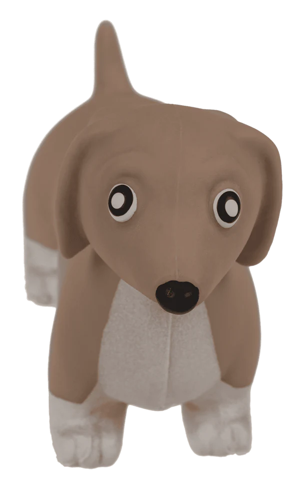 Elastyczny gniotek w kształcie jamnika wypełniony piaskiem. Miękki, rozciągliwy i relaksujący gadżet antystresowy dla dzieci i dorosłych.