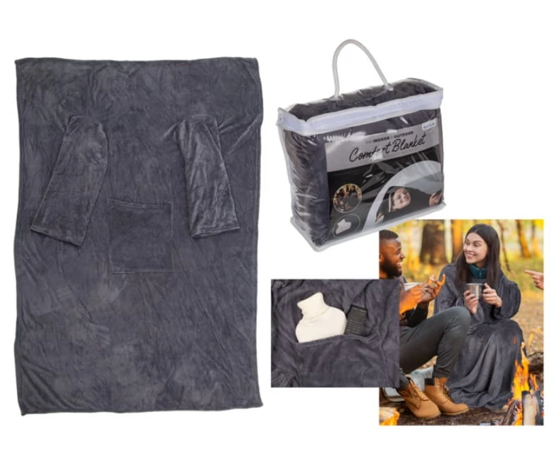 KOC z rękawami i kieszenią KOCYK Z KIESZONKĄ SZARY