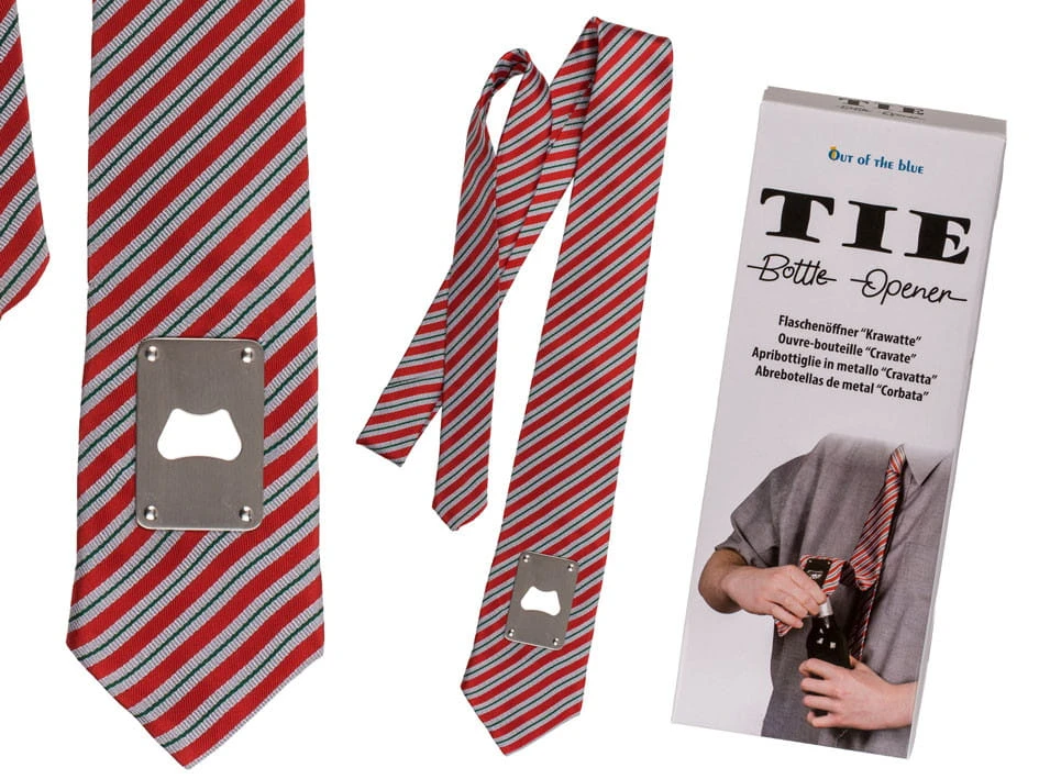 Chcesz być prawdziwym królem imprezy? Koniecznie załóż krawat z otwieraczem - każdej zbłąkanej duszy na imprezie (zwłaszcza płci pięknej) otworzysz sprawnie butelkę piwa i zostaniesz jej bohaterem. Gadżet, który rozbawi każdego i będzie niezwykle użyteczny. Świetnie się sprawdzi również na wieczorach kawalerskich.