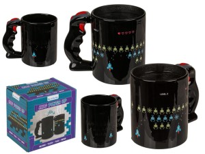 Wyśmienity kubek dla fanów gier i nie tylko. Inspirowany kontrolerem do retro konsoli oraz komputerów, zrobi na każdym fanie elektronicznej rozrywki naprawdę spore wrażenie. Teraz wszyscy, którzy z trudem rozstają się z padem, będą mogli podczas picia kawy czy herbaty ciągle czuć pod palcami dobrze znane guziczki i kształty. To jednak nie wszystko - po wlaniu ciepłego napoju na kubku wyłonią się przeciwnicy z tak dobrze wszystkim znanej gry. Kubek o pojemności około 400 ml. Świetny pomysł na prezent.